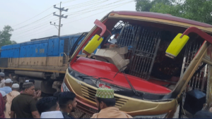 ফায়ার সার্ভিস ও সিভিল ডিফেন্সের উপসহকারী পরিচালক মো. ইদ্রিস বলেন, “প্রাথমিকভাবে ধারণা করা হচ্ছে, রেল ক্রসিংয়ে যথাযথ সিগন্যাল না থাকায় বাসটি রেললাইনে উঠে পড়ে এবং এই দুর্ঘটনা ঘটে।”