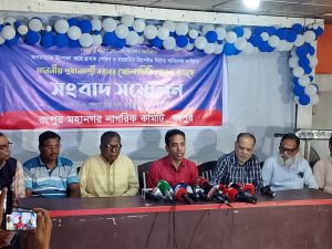 সংবাদ সম্মেলনে মাননীয় প্রধানমন্ত্রী বরাবর প্রেরিত খোলা চিঠি পাঠ করেন রংপুর মহানগর নাগরিক কমিটির সদস্য সচিব এডভোকেট পলাশ কান্তি নাগ।